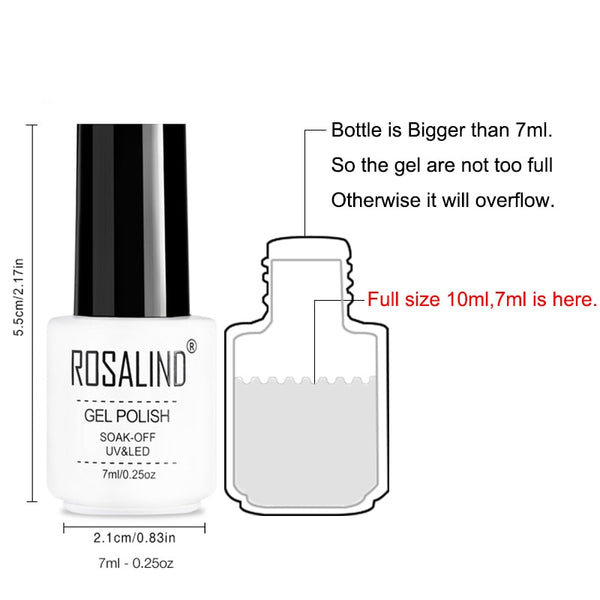 ROSALIND  7ML Pure Color series 01-58 High Quality Nail Gel Polish UV&LED Soak-Off Gel Varnish Manicure GlueWe are shipping in Thicken bubble envelope bag, if is broken or any problem, please contact with us before...
